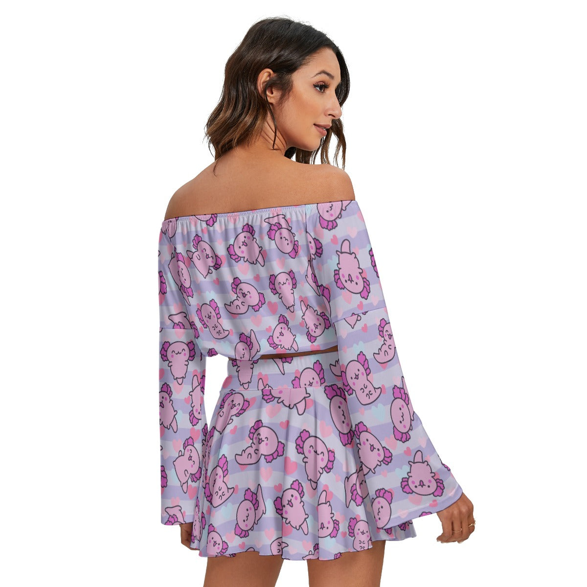 Slip into something swirly with the Axolove Twirlie Set – a dreamy one-shoulder crop top and mini skirt combo that’s made for twirling, flirting, and living your cutest fantasy life 🩷