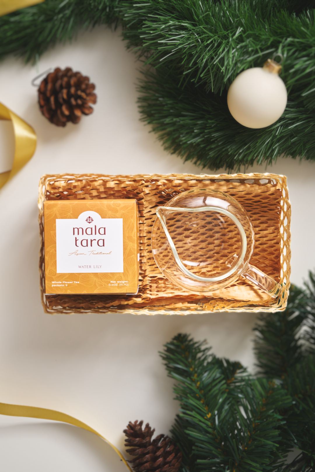 Enhance your tea rituals with the Blooming Starter Gift Box. Featuring one box of our organic whole flower tea (choose your preferred flavor) and a sleek, borosilicate glass teapot, this tea set with tea beautifully highlights the artistry of steeping flowers. Perfect as a thoughtful holiday tea gift set or a personal indulgence, it combines elegance and functionality, offering an elegant tea for relaxation experience for tea lovers and art enthusiasts alike.