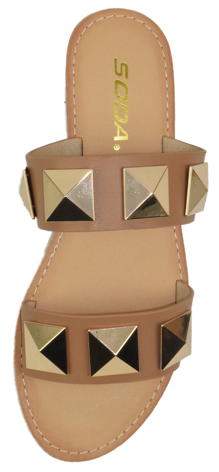 - Soda Shoes Women's Sandals Double Strap Flip Flops Slides Large Gold Studded CETUS-S