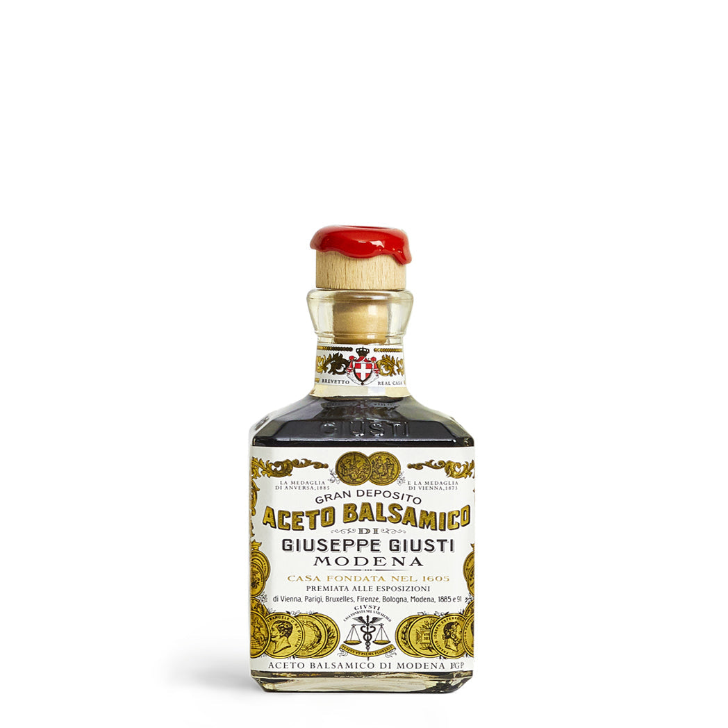 The Balsamic Vinegar of Modena 3 Gold Medals is born from sweet, sun dried grapes. A dense and sweet condiment very versatile and ideal on any type of dish