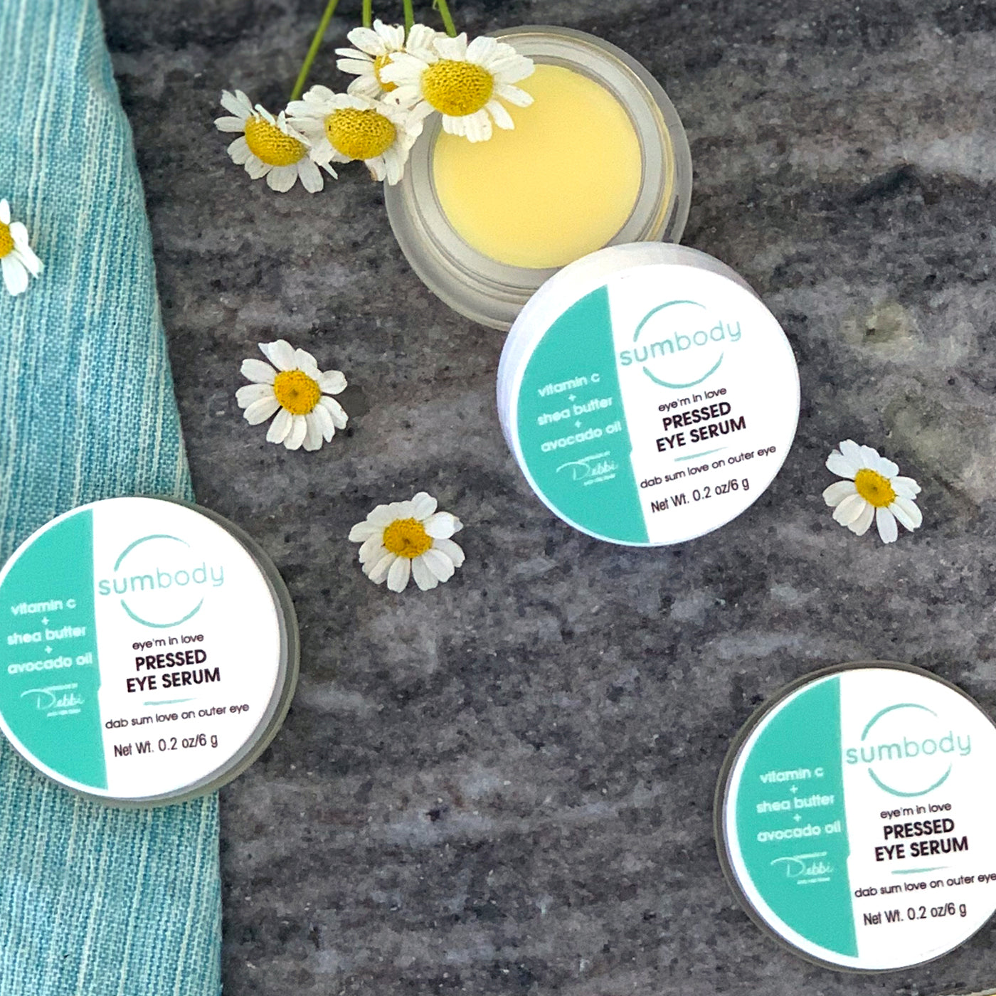 Meet Eye’m in Love – a nutrient-rich pressed eye serum loaded with antioxidants and moisture-boosting wonders. It effectively combats visible signs of aging, discoloration, wrinkles, sagging, and dryness around your eyes and mouth, all while delivering a smoothing, toning, and moisturizing effect. It's not limited to your eyes; it can be used around your mouth and it also work its magic as a cuticle conditioner.