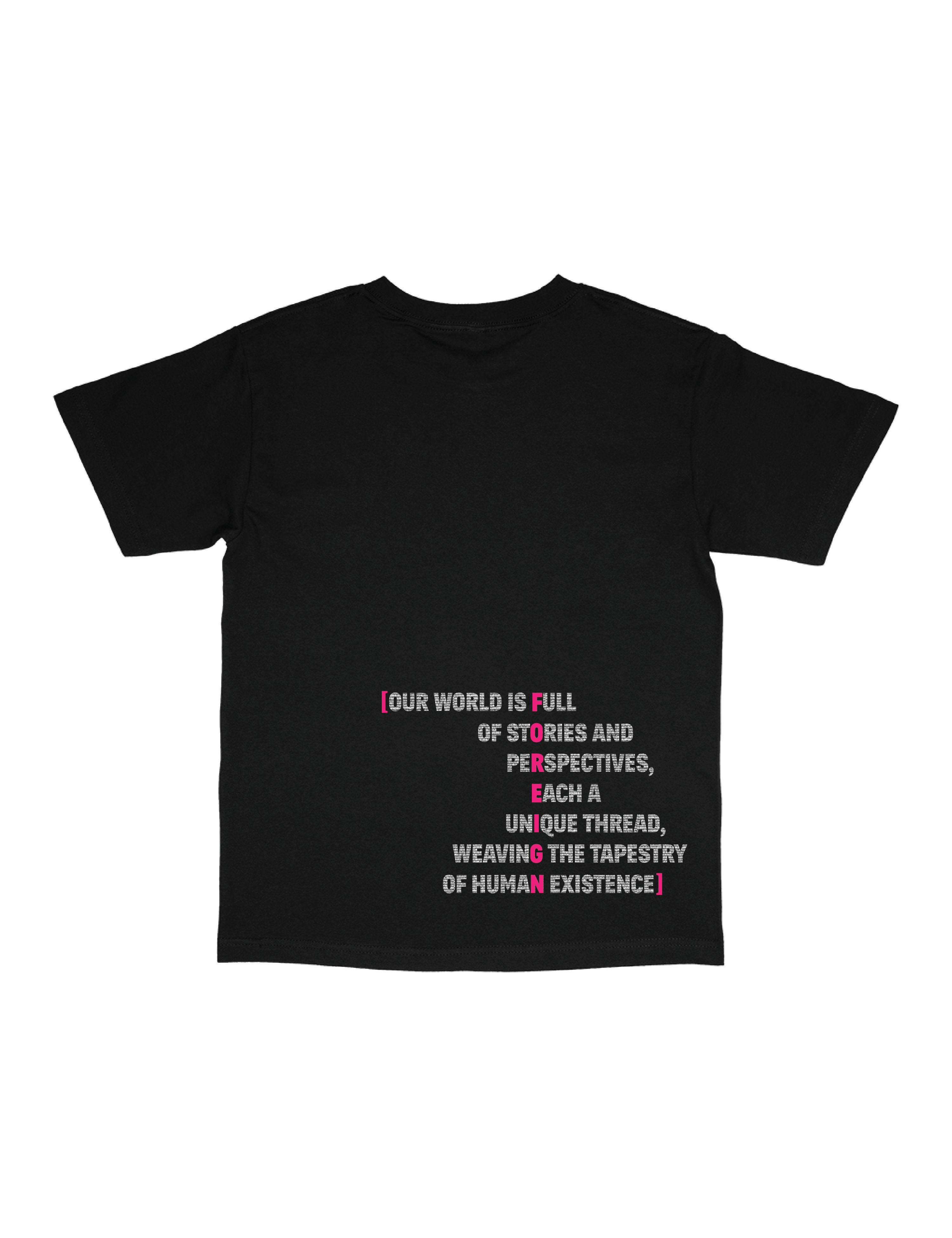 The FO[REIGN] The Tapestry Tee is a tribute to the collective stories and diverse perspectives that shape our shared human history. As part of the FO[REIGN] sub-brand, this tee embodies the idea that "Everything is FO[REIGN] until it's [FAM]ILAR," reflecting the interconnectedness of all cultures and experiences. The design honors the rich tapestry of human existence, reminding us that every story—whether told or untold—adds to the fabric of who we are as a global community.