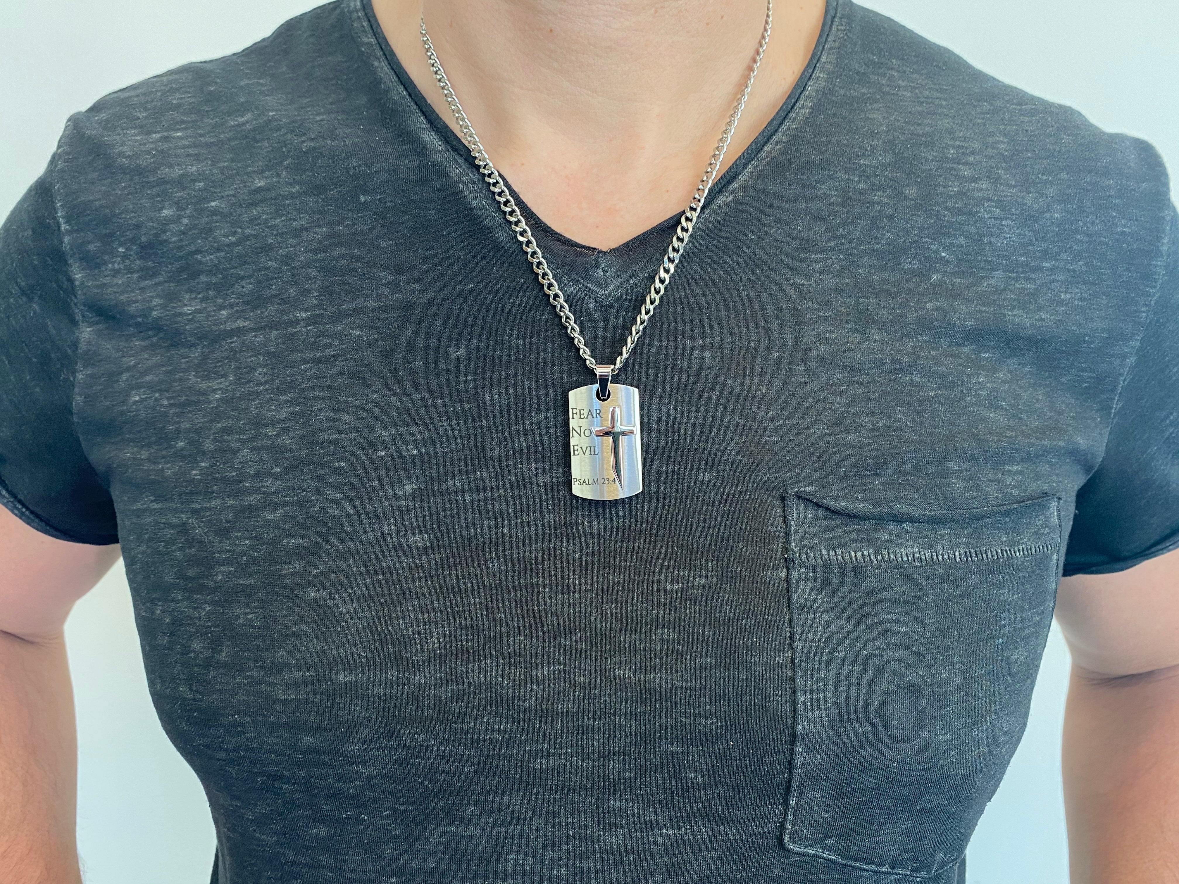 • Front: Fear No Evil – Psalm 23:4. Back: Fear No Evil (verse written out) – Psalm 23:4
