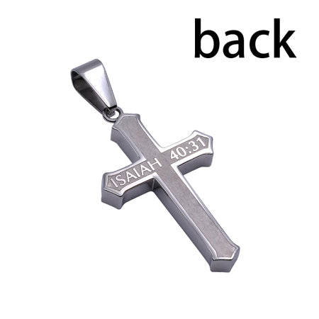 Men's Stainless Steel cross with satin finish surface front and back and high polish frame work. Every order comes with complimentary velvet gift bag. Orders ship in 1-2 business days from Phoenix, Arizona.