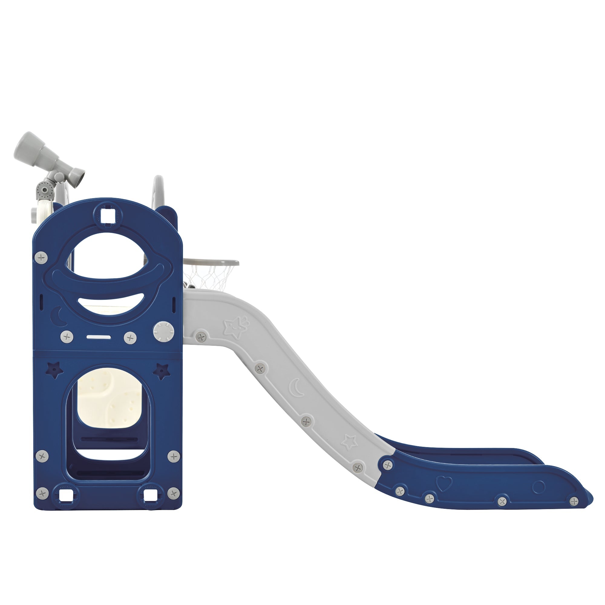 • Kids Slide Playset Structure 7 in 1, Freestanding Spaceship Set with Slide, Arch Tunnel Blue+Grey + HDPE