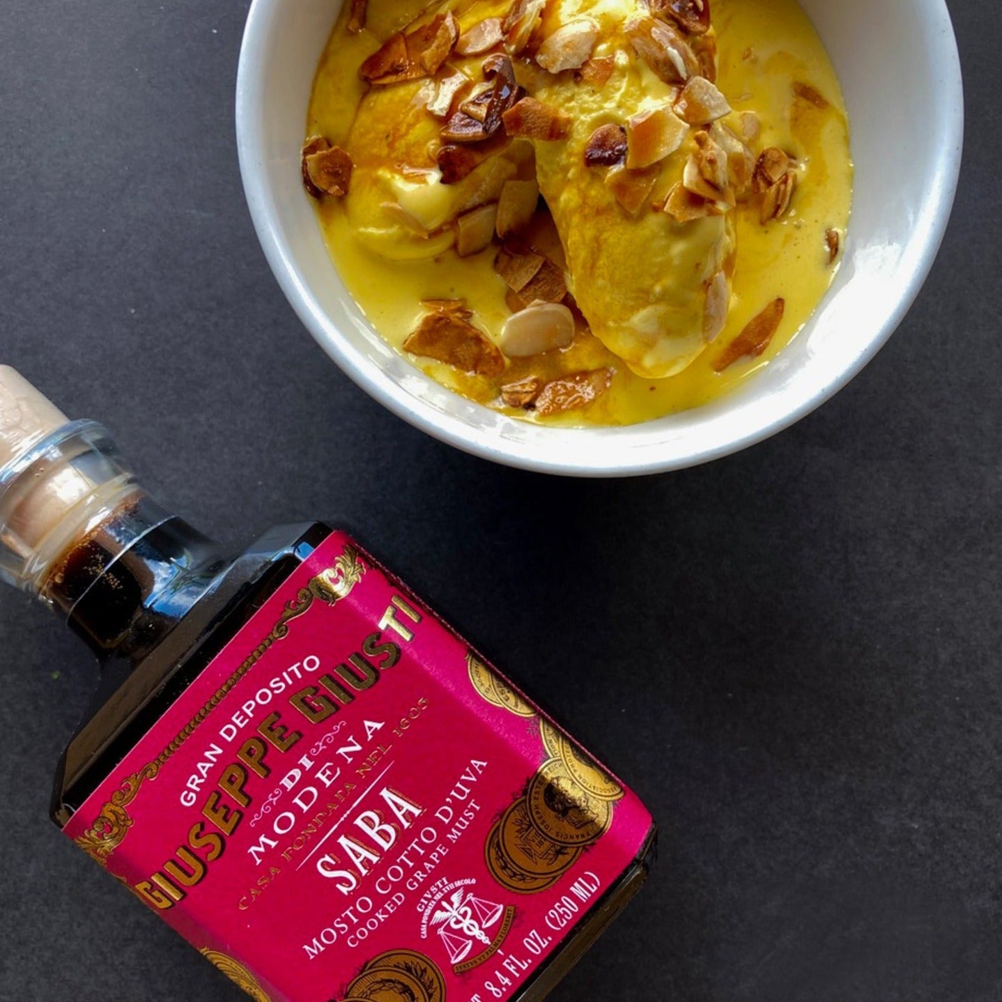 Cooked grape must, called “Saba”, is the main and most important ingredient for the production of Balsamic Vinegar of Modena. Already in use at the time of the ancient Romans, it was and is obtained by cooking in open air must of local grapes for many hours, reduced down to a sweet and dense liquid. Appreciated especially by children, Saba is versatile, enhancing various ingredients and recipes.