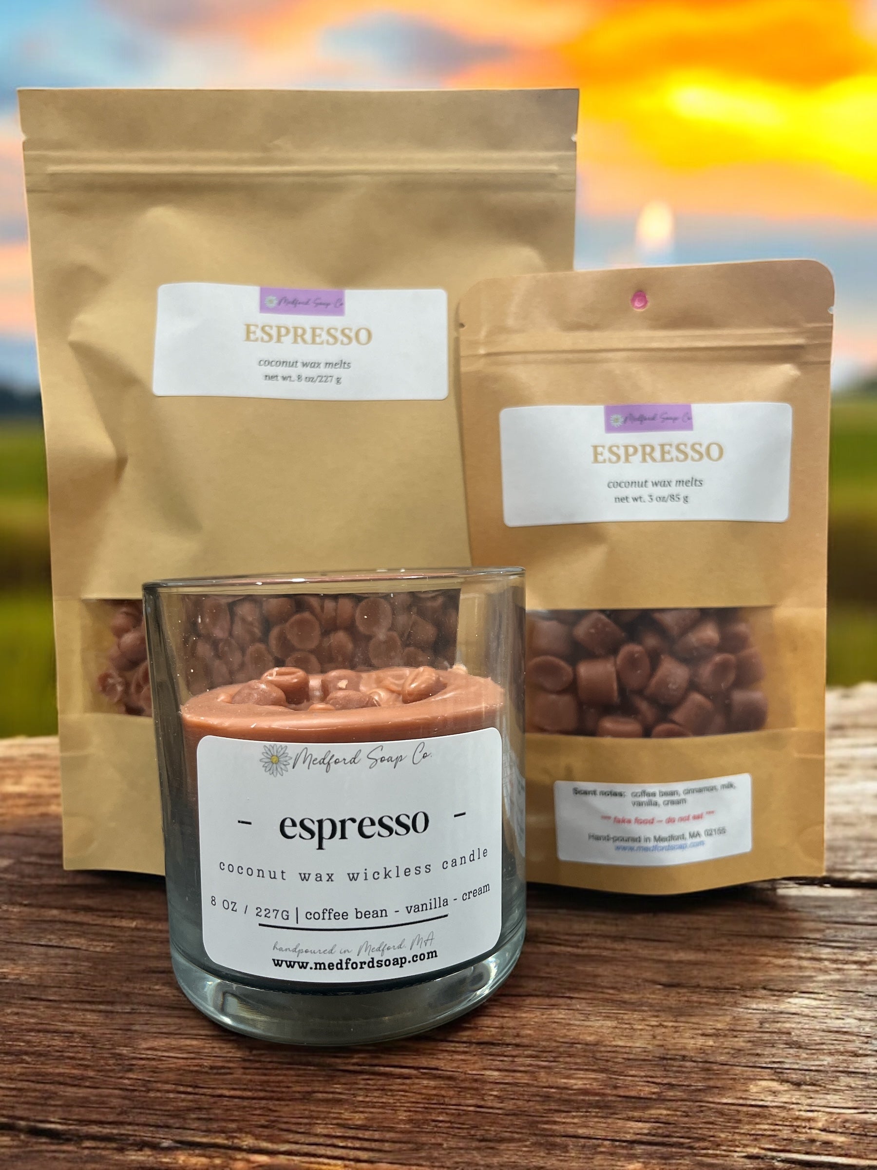 (Because these are wickless, you will need to use a warming lamp or base to heat the wax, which will melt it and then the fragrance will be released. Medford Soap Co. sells both of these types of warmers, or they can be found at alternate retailers.)